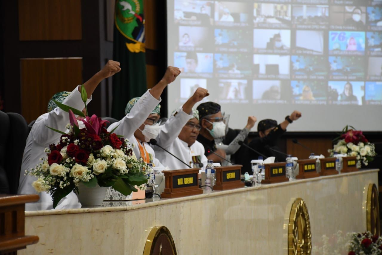 BANDUNG, Lintasjabar.com – Dalam menangani dan menanggulangi pandemi Covid-19 yang telah terjadi lebih dari satu tahun, DPRD Provinsi Jawa Barat mengapresiasi kinerja Pemprov Jabar di peringatan Hari Ulang Tahun Provinsi Jawa Barat yang ke 76 dalam Sidang Paripurna bersama Gubernur Jabar, Wakil Gubernur Jabar beserta Forkopimda lainnya.